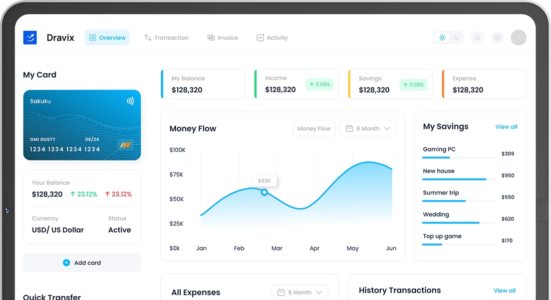 Dravix empowers users to take full charge of their finances with clear, actionable insights. From tracking expenses to identifying smarter ways to save, Dravix turns complex financial data into simple, meaningful guidance.