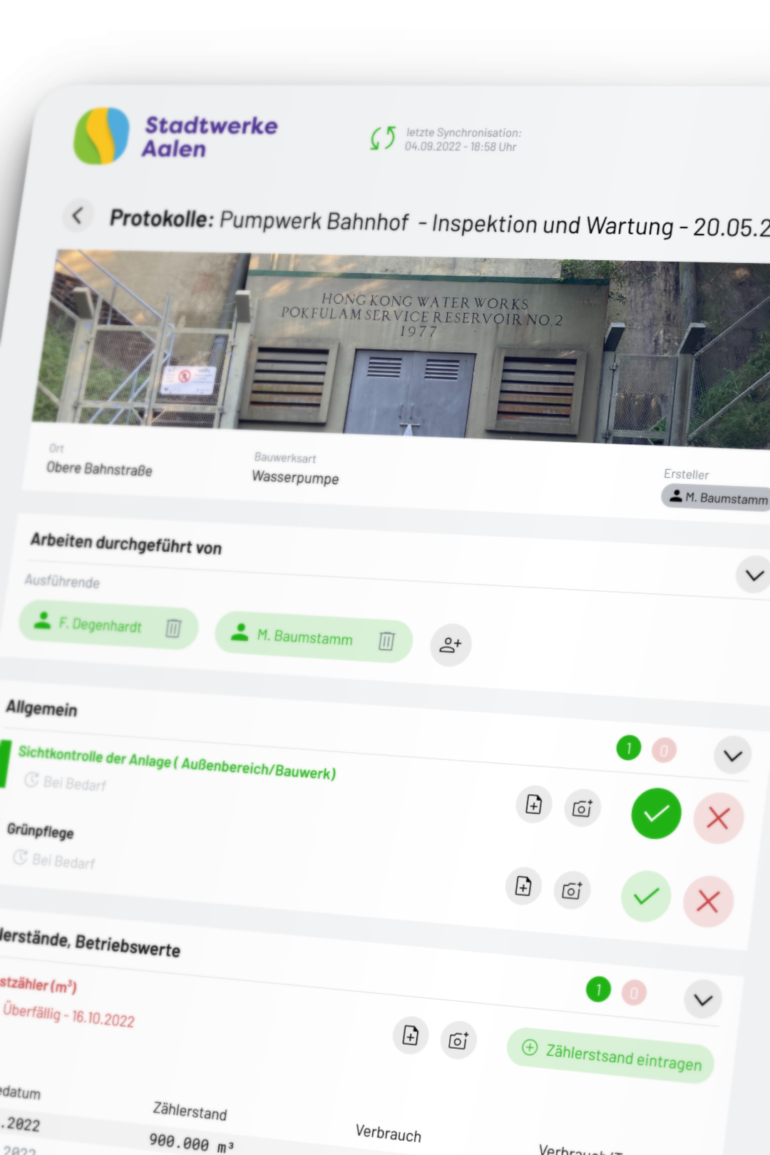 Kein Netz an der Anlage? Kein Problem. Die App funktioniert komplett offline. Sie synchronisiert alles automatisch, sobald Sie wieder Empfang haben.